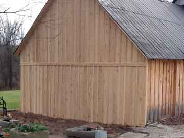 A classic exterior siding, board and batten has been used for many years for homes, barns, sheds and boat houses. Our board and batten uses rough surface boards 4, 5, 6, 8, and 10 inches wide. Our standard batten (to cover the joints between boards) is 5/8 x 1 3/4 “.