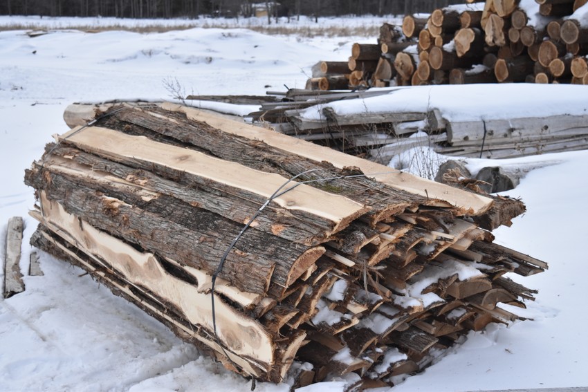 Slab is the outside cuts from a cedar log, obtained in the process of changing a round log into boards. Cedar slab makes excellent kindling, and is also used to make rough fencing and windbreaks. Rather than simply discard the cedar slab, we collect the slab pieces in a frame and steel band them into a bundle. The slab bundles are roughly 3 feet by 4 feet by whatever length of log we are cutting (generally 9 to 16 feet). We can load them on your truck or sturdy trailer with our tractor. They weigh roughly 1500 pounds, which is a lot of kindling!
